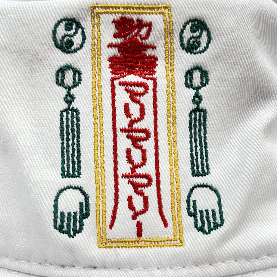 キョンシー風味なお札デザインを刺繍しています。