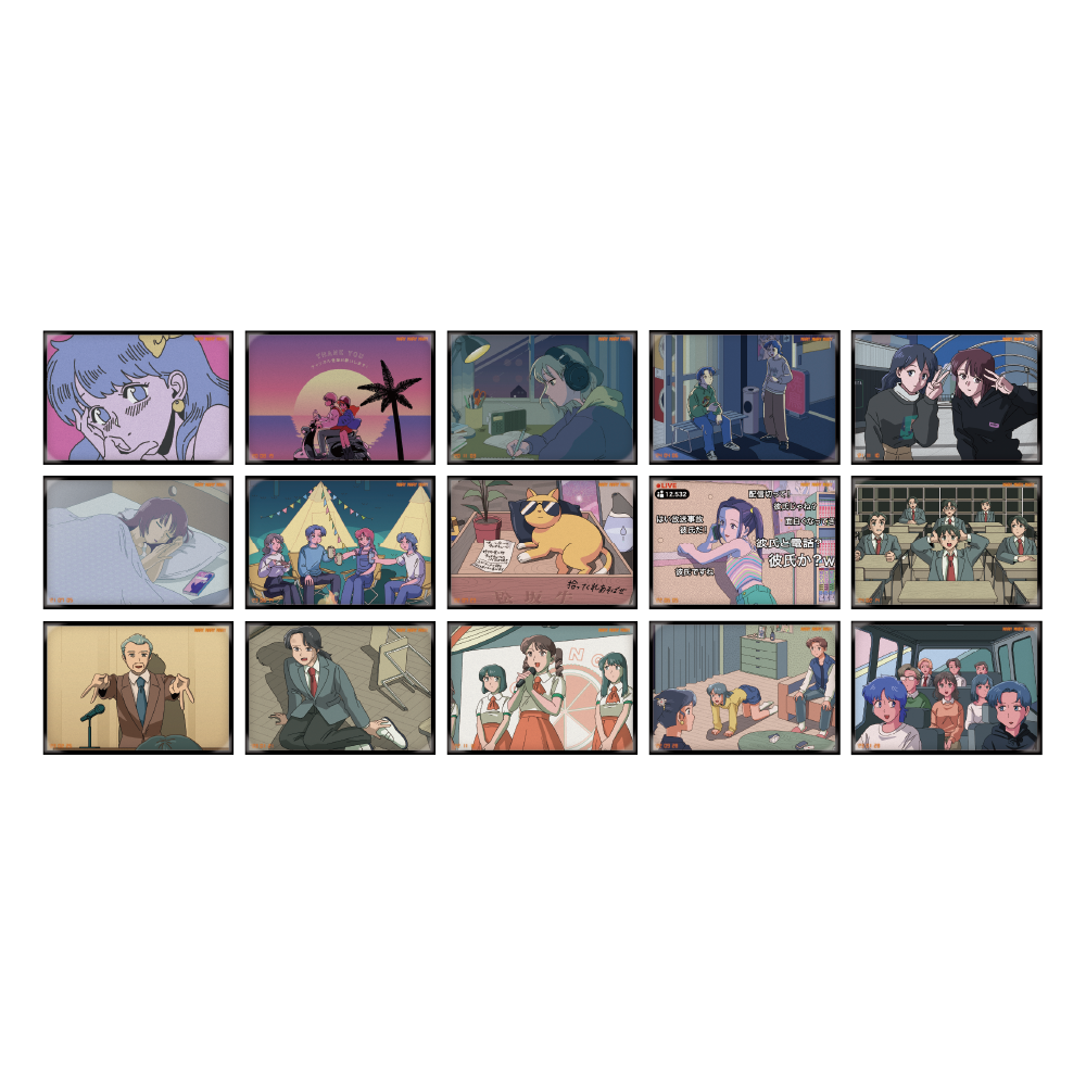 これまでの5年で登場した動画のイラストがフィルムカメラ風にデザインされた缶バッジです。よく見ると動画が出た日の日付が!