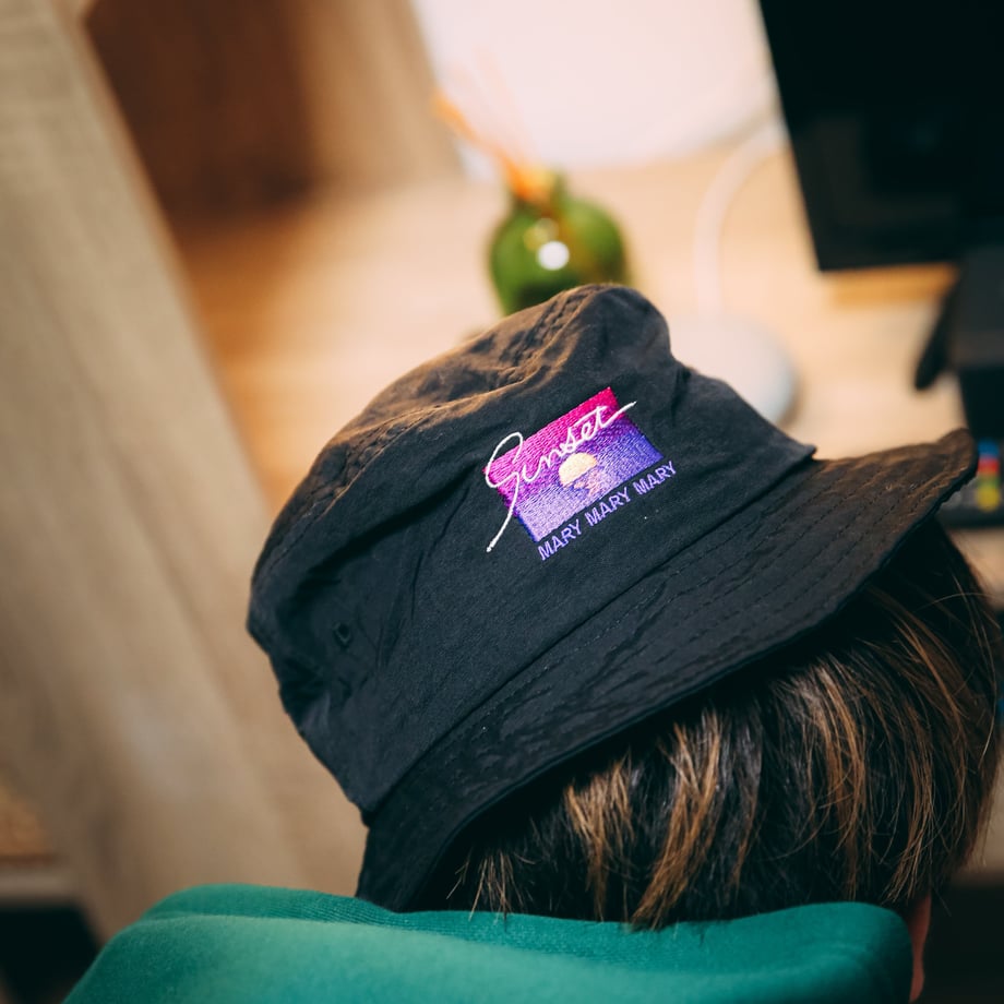 エンディングでバイクが走る、あの夕焼けが完全刺繍。