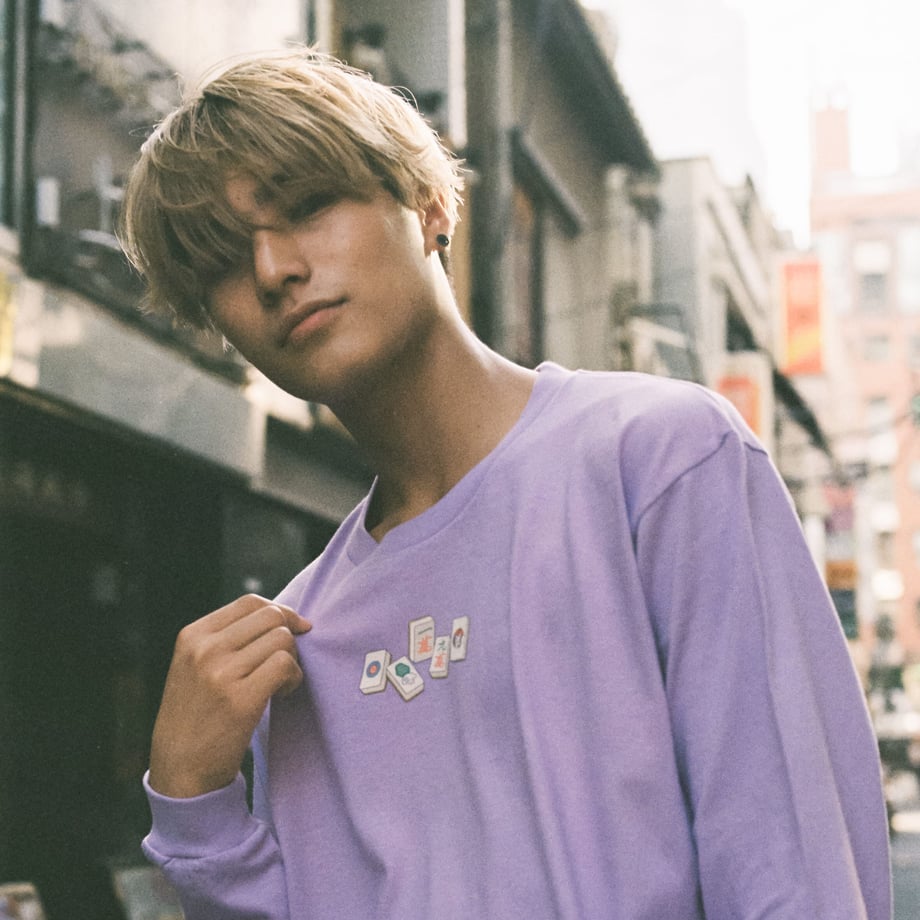 ※商品画像はLサイズ。着用商品(Purple)もLサイズです。(モデル身長:180㎝)
